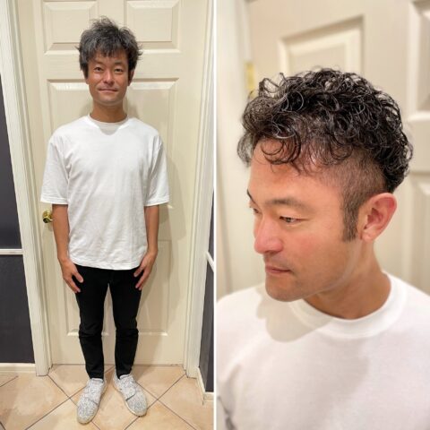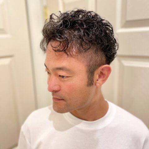 全体をやや短めにバックにパーマを巻くスタイルです。